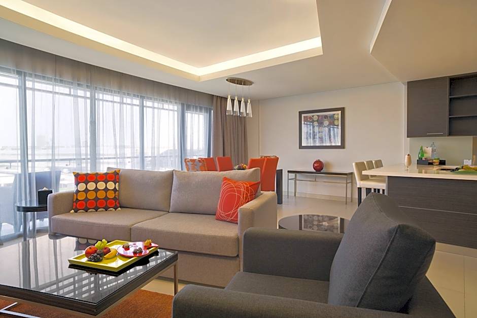 Pool View Duplex Three Bedroom Apartment With Balcony is 1938 square feet and includes a double bed 131-150 width plus extra beds on demand, desk, satellite tv , cable tv, hairdryer, tea and coffee making facilities , ironing set, safe, bathrobes, and slippers.